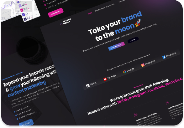 Start, launch, and scale your business with high-performance, ROI-focused digital marketing. At Apollo Media, we assist brands in expanding their following, generating leads, and increasing sales across platforms such as TikTok, Instagram, Facebook, YouTube, and Google.