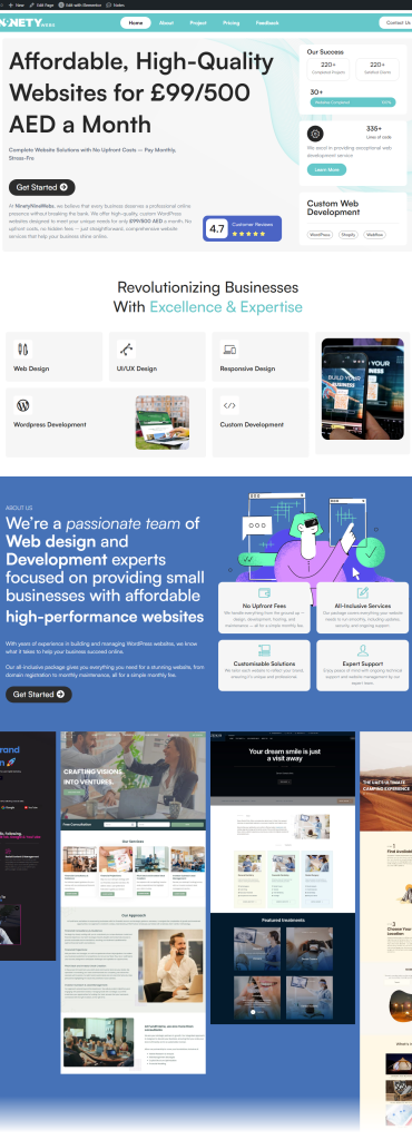 At NinetyNineWebs, we believe that every business deserves a professional online presence without breaking the bank. We offer high-quality, custom WordPress websites designed to meet your unique needs for only £99/500 AED a month. No upfront costs, no hidden fees – just straightforward, comprehensive website services that help your business shine online.