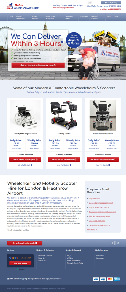 We offer fast, reliable wheelchair and mobility scooter rentals across Dubai, with delivery and collection available from 5am to 11pm, 7 days a week. Need it urgently? We also provide express delivery within 3 hours of booking* so you can explore Dubai without delay.
